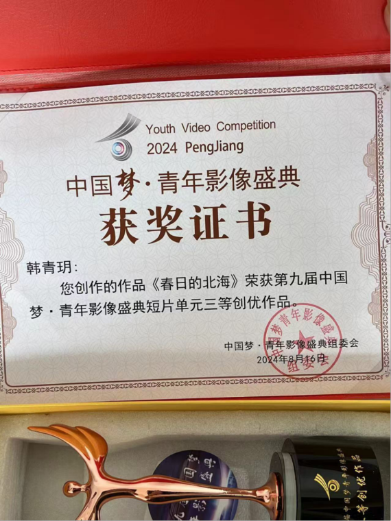 我校人文与社会科学学院教授周华作为指导教师、20级编导专业康健、徐镜涵创作《我的导演梦》获得青春梦单元一等奖;22级编导专业韩青玥、丁春云创作《春日的北海》获得短片单元三等奖。