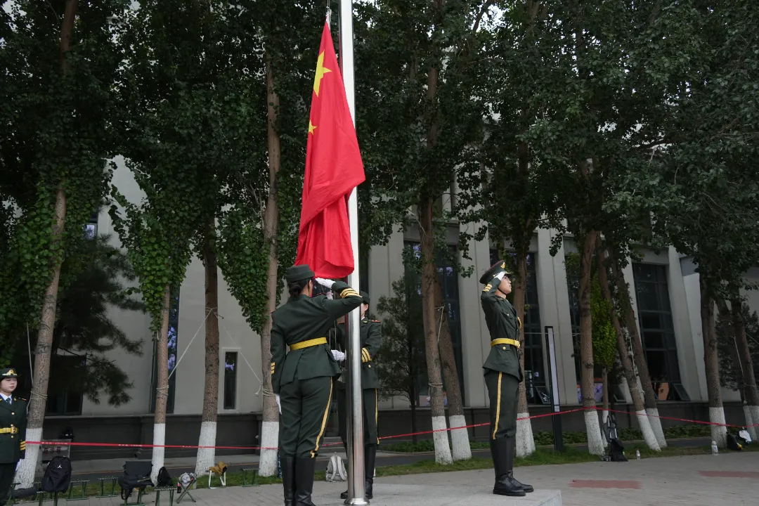 随后,举行了庄严的升国旗仪式。全体师生肃立,面向国旗行注目礼,高唱国歌,表达对祖国的无限热爱与崇高敬意。