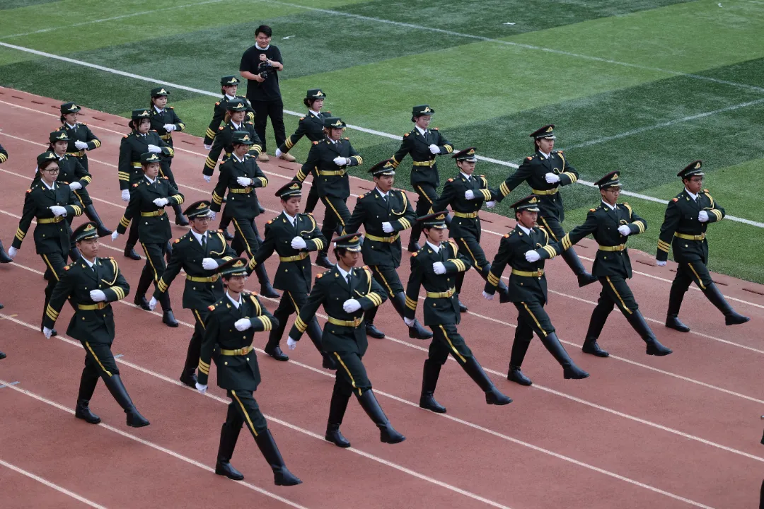 在分列式环节中,各个连队方阵依次走过主席台。学员们口号响亮、步伐铿锵、动作整齐划一,赢得了现场领导和师生的阵阵掌声,充分展示了连日来的军事训练成果。
