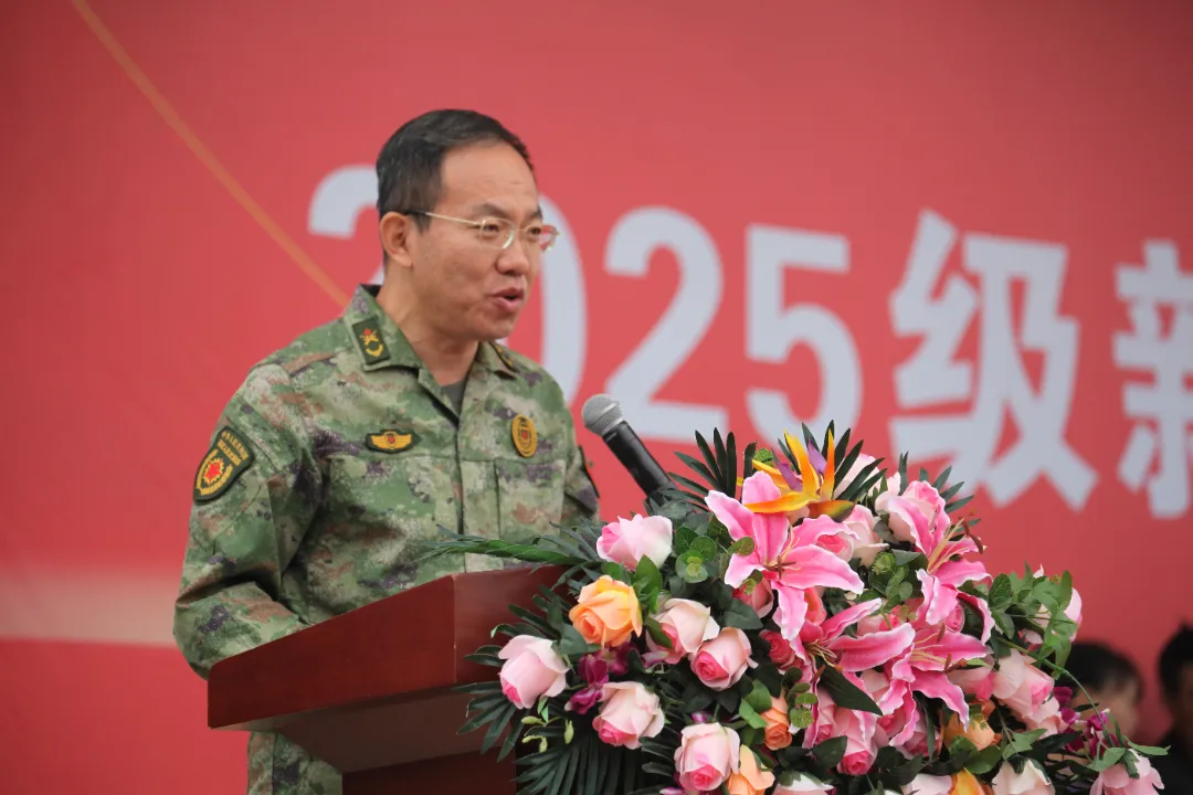 军训团政委刘克光作2025年军训工作总结。他在发言中表示,同学们以整齐的步伐、响亮的口号和高昂的斗志,出色完成了各项汇报表演,充分展现了新时代青年的卓越风采与使命担当。他指出,本次军训取得圆满成功,也离不开学校领导的高度重视和各部门的周密安排,以及全体教官的辛勤付出。军训采取按学院分连编队方式,有效增强了同学们的集体归属感;严格的考核与管理制度锤炼了同学们的意志品质;丰富多彩的文体活动进一步提升了团队凝聚力。希望全体同学将军训中培养的坚韧意志、协作精神和责任意识延续到今后的学习生活中,努力成长为实现中华民族伟大复兴的先锋力量。