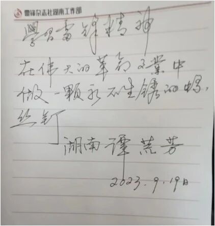 卜大校用“无手活雷锋”谭荒芳的故事向同学们解读“坚韧”的内涵。谭荒芳八个月大时失去双臂,却凭着超人的意志,努力学习和生活,以双腕“执笔”38载,采集雷锋史料800万字,开展宣讲8000余场,把信仰写进生命。