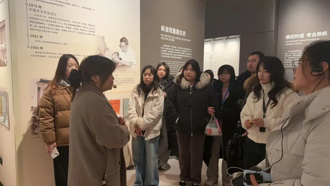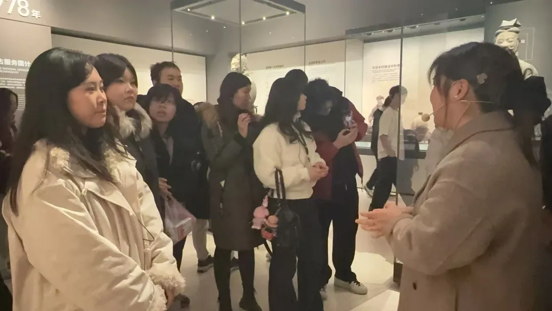 在“考古实证”的维度里解锁中华文明的演进密码。作为国内首座考古专题博物馆,陕西考古博物馆以丰富的文物藏品、详实的考古资料与生动的场景复原,串联起陕西从史前文明到秦汉隋唐的历史长卷:远古先民打磨的石器留存着文明起源的微光,商周青铜礼器镌刻着礼乐文化的印记,秦汉金银器彰显着帝国气象,隋唐瓷器流转着盛世风华。每一件文物都是历史的“见证者”,每一段考古故事都在印证中华文明的绵延不绝。同学们跟随讲解穿梭于展厅之间,聆听考古工作者“以手铲拨开历史尘埃”的坚守,了解文物修复背后的匠心付出,对“考古让历史可触可感”有了深刻认知。这场参观既拓宽了历史文化视野,更点燃了同学们传承传统文化的责任感,让“守护文明根脉”的信念愈发坚定。