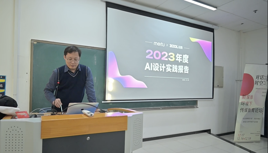 网络与新媒体专业分论坛聚焦“技术赋能内容创新——AIGC在新媒体设计中的实践与探索”,由白仁飞副教授担任主讲嘉宾。白教授结合当前AIGC技术的发展现状,从静态图像生成、动态视频制作、文案智能创作等多个维度,系统解析了AIGC技术在新媒体设计中的应用逻辑与实操方法。他通过现场演示的方式,展示了Midjourney、Runway等主流AIGC工具的使用技巧,从关键词设定、风格调整、内容优化等细节处进行讲解,让师生直观感受到技术对新媒体创作的赋能价值。同时,白教授强调,AIGC技术是辅助创作的工具,核心竞争力仍在于创作者的创意与思维,鼓励师生树立“创意+技术”的融合理念,合理运用AIGC技术提升创作效率与内容质量,同时注重培养自身的原创能力与批判性思维,避免过度依赖技术。