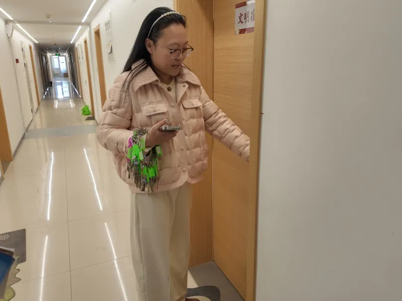 宿舍是同学们在校期间的“第二个家”,更是校园文明的基础单元。辅导员们走进宿舍,与刚刚返校的同学们亲切交谈,耐心叮嘱他们在新学期注意用电规范、保持宿舍整洁。与同学们聊聊假期生活,询问返校适应情况,倾听需求与建议,为有困难的学生提供及时帮助,暖心的问候、贴心的提醒,让宿舍充满家的温暖,也让他们感受到满满的归属感。