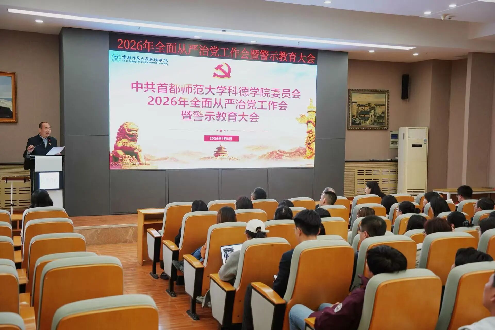 为深入推进全面从严治党,强化教师党员纪律意识与廉洁自律观念,营造风清气正的育人环境,近日,首都师范大学科德学院召开2026年全面从严治党工作会暨警示教育大会。校长王万良,党委副书记、副校长陈永侠,副校长赵飞,校长助理曹恰出席会议,全体教职工党员参加会议。会议由党委书记许虎主持。
